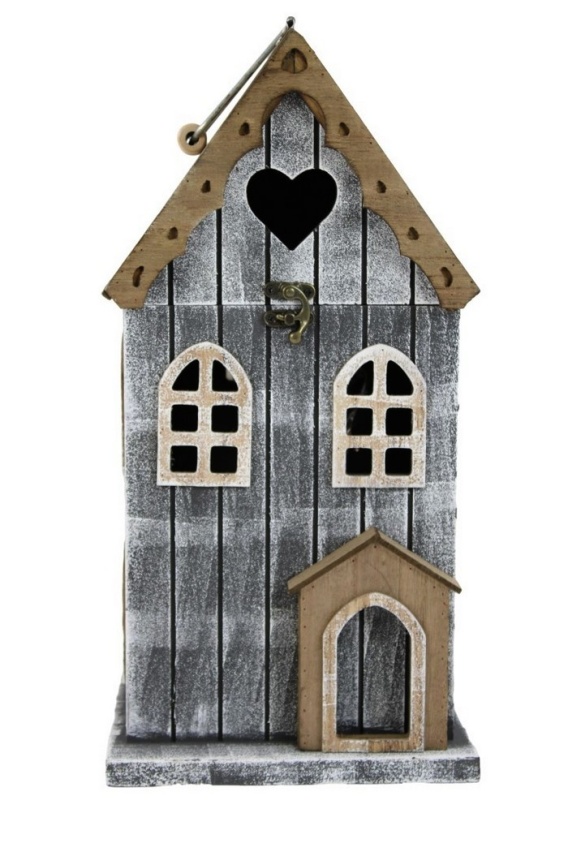 Domek do powieszenia lub postawienia, wykonany z drewna, wewnątrz umieszczono diody Led, zasilane 2 bateriami AAA ( baterii brak w zestawie). Stylowy lampion to oryginalna dekoracja, która wpadnie w oko osobom lubiącym funkcjonalne, a jednocześnie oryginalne dodatki w aranżacji wnętrz. Sprawdzi się jako atrakcyjna dekoracja do każdego domu, ogrodu lub balkonu.