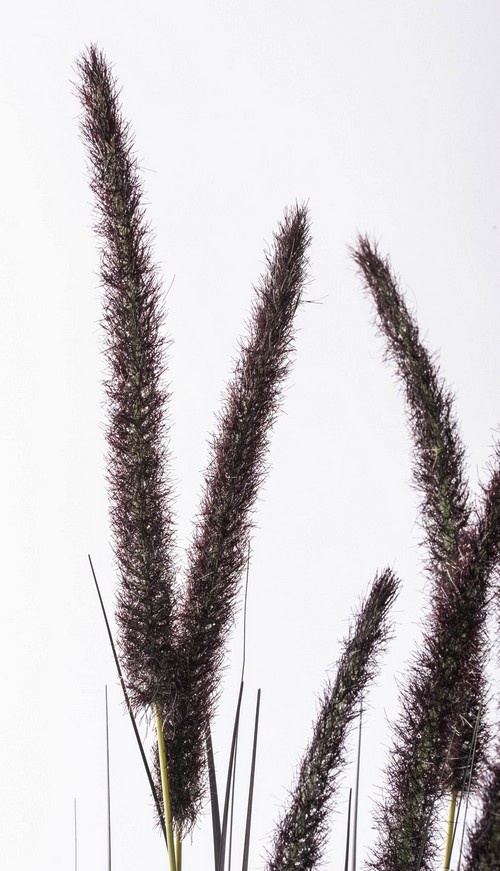Sztuczna roślina ozdobna wykonana z wysokiej jakości materiałów imitujących wygląd prawdziwej.Imitacja trawy odmiany " Rubra" wyróżnia się atrakcyjną, purpurowobrunatną barwą zarówno liści jak i kwiatów, które są długie i puszyste. Gęste zwarte i różnej wysokości trawy osadzone są w stabilnej, plastikowej donicy. Sztuczna roślina ozdobna jest niewymagająca: nie trzeba jej podlewać, nie wymaga światła dziennego, może stać w ciemnym miejscu, nie pachnie. Sztuczna trawa ozdobna może stanowić wyposażenie wnętrza domu, firmy, biura, salonu.